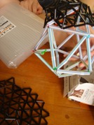 ストロー班はなかなか全員の日程が合わなくて、1人1人、来れる時間に来て個人作業することしかできなかったんですが、連携しながら昨日、オブジェの1つの20面体ができあがりました♪♪