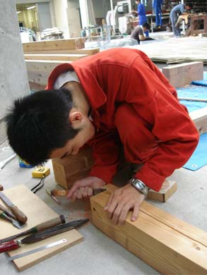 今日の作業は主に、桁のほぞ穴の調整。
