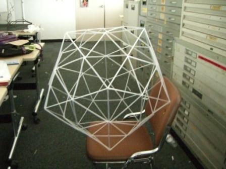 そして問題のドーム・・・。さいとーさんにも一緒に考えてもらったのですが、20面体の1面ずつを基本パーツとして作るのがいいのではないかという考えに至りました。