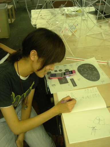 中島です。初カキコ。今朝話し合った結果、木を吊す案も、木の枝振りをプリントしたものを吊す案も、光りをつけたり、これ以上要素を増やさず意味をもたせたり、構成を工夫する方向に向かいつつあります!