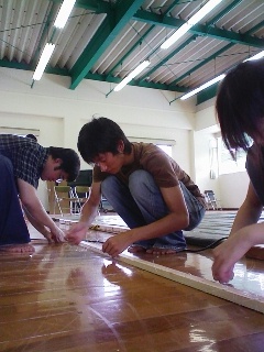 今日は体育館2階で作業しました。