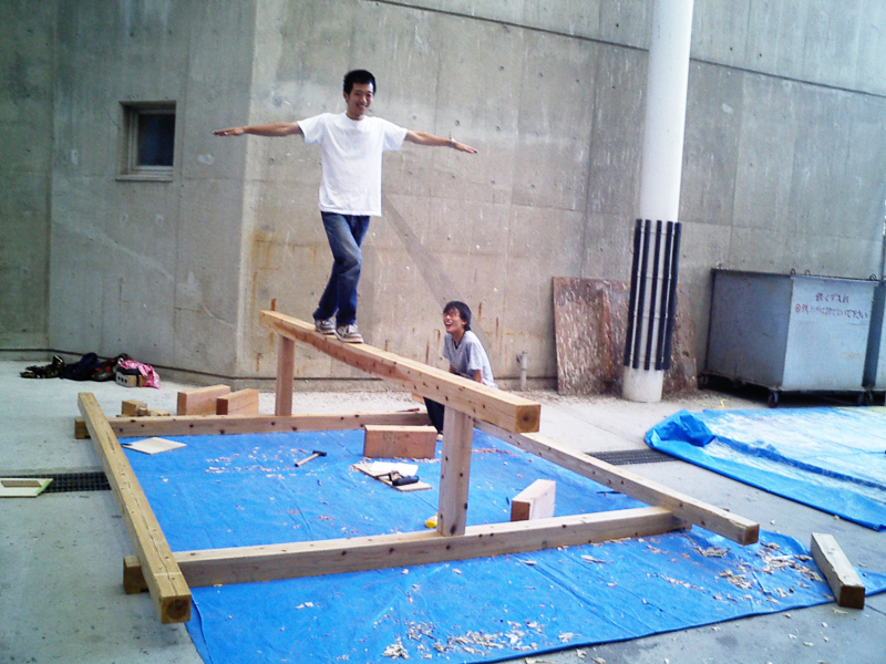 まだ調整が済んでいない土台があったので何とかしました。(写真左・口田がやってます)