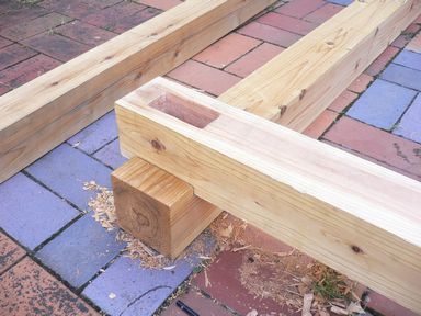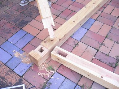 ほぞがきちんと穴を通り、がっちりと組み合うように削ってははめて、