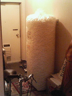 柱状柔らかクッションを、自立させるために使います。