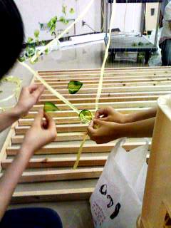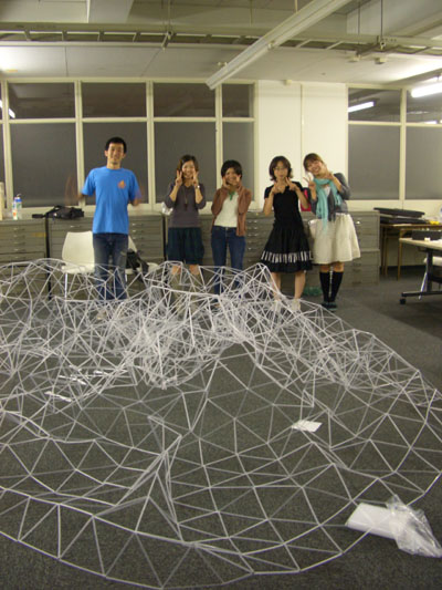 さて、ストロー班の作業内容は・・・今ひたすらドームの『編み』です。