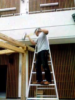 面に張りをもたせるように吊るのが1番難しくて、半日はキャット(天井)で過ごしました。